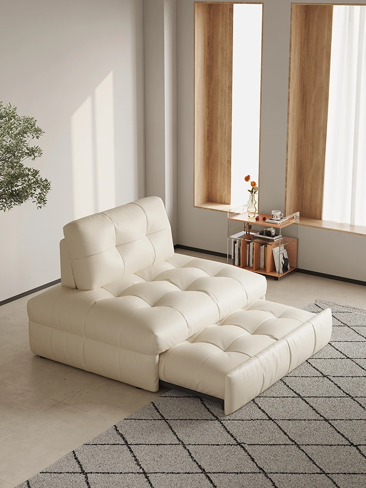 Luxurious Creamy Puff Leather Sofa Bed - Perfect for Small Living Rooms, Single or Dual Use with Premium Top-Grain Leather, Customizable Modular Design