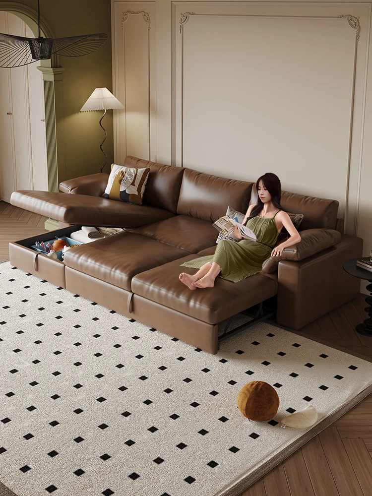 Italian Minimalist Genuine Leather Sofa - Retro Style for Small Living Rooms, Space-Saving Sofa Bed with Storage - Perfect for Modern Homes