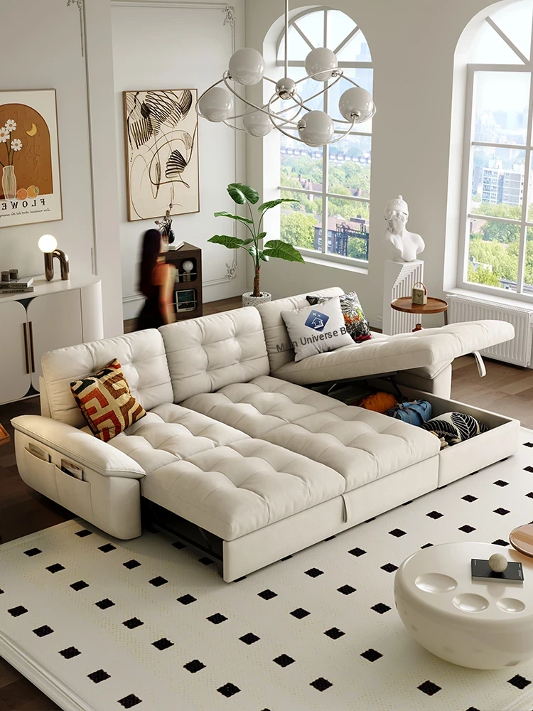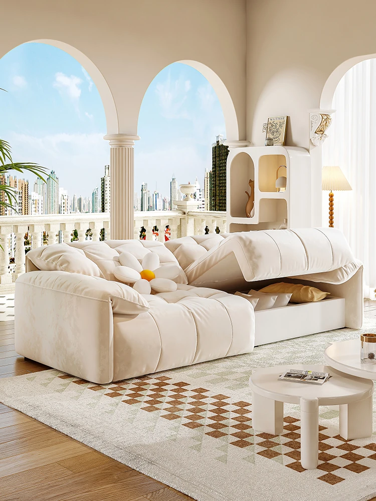 Convertible Cloud Sofa Bed - Trendy Small-Space Sofa with Storage and Adjustable Bed for Modern Living Rooms