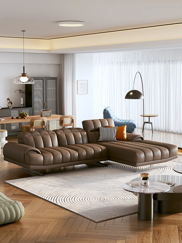 Luxurious Italian Minimalist Full-Grain Leather Designer Sofa for Modern Living Rooms - Elevate Your Home with Timeless Elegance