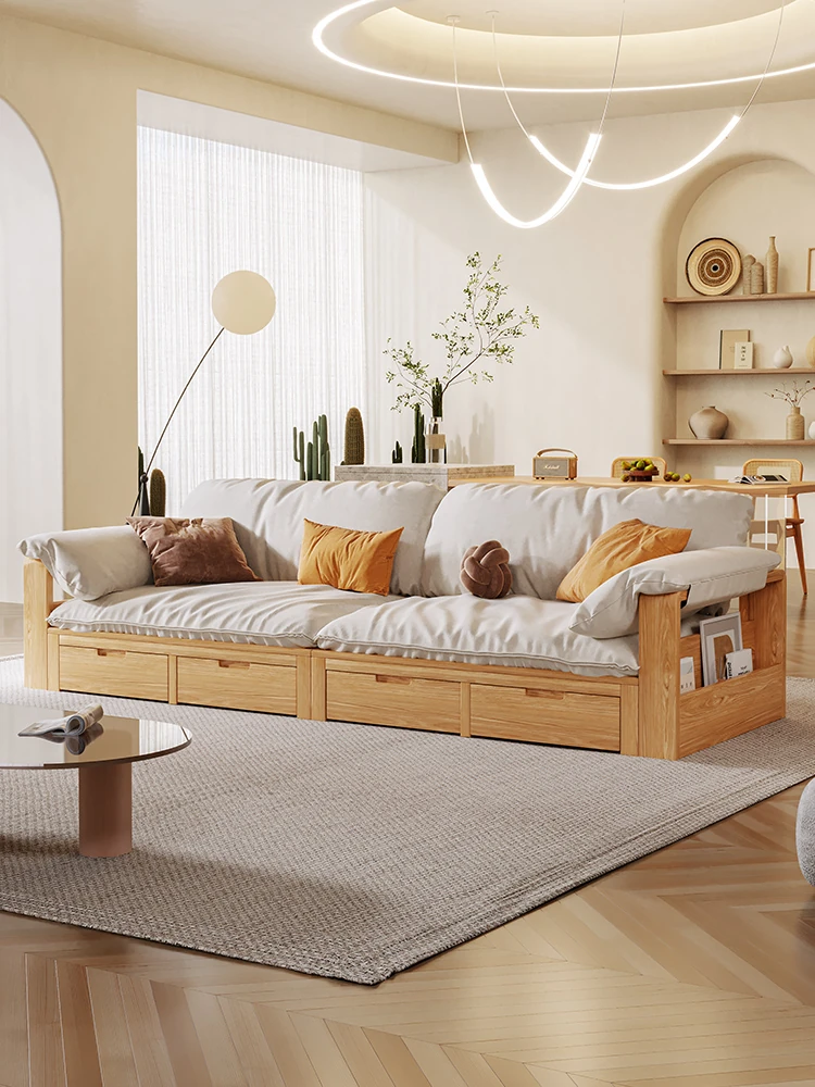 Contemporary Minimalist Wabi-Sabi Oak Sofa with Elephant Ear Design - Premium Tech Fabric & Down-Filled, Featuring Hidden Storage for Modern Living Rooms