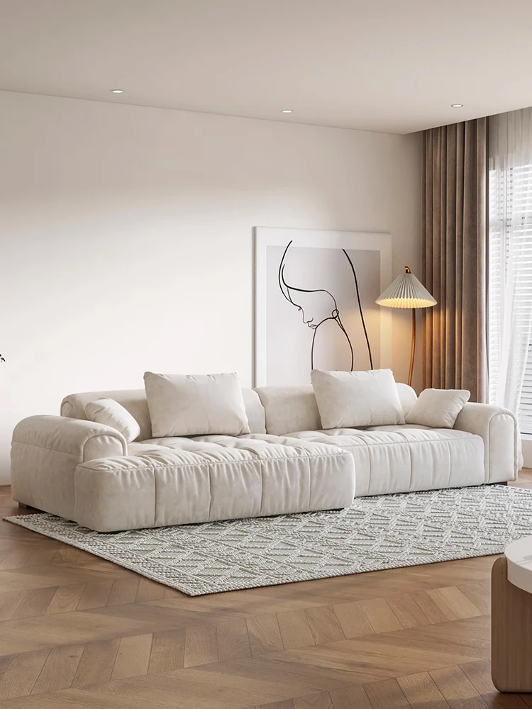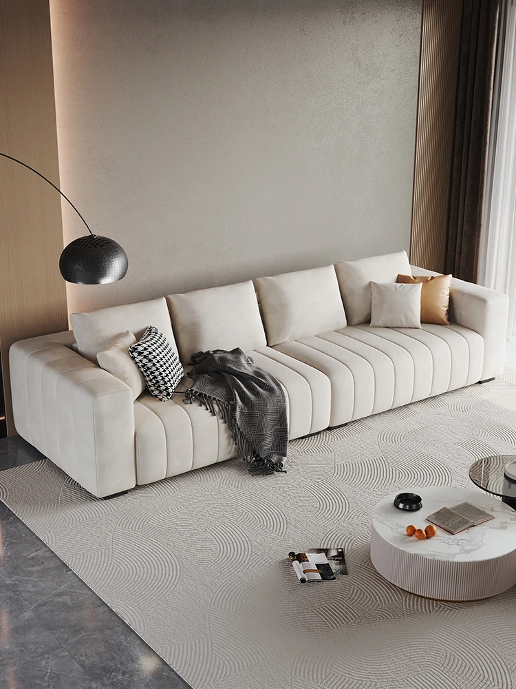 Modern Minimalist Antibacterial Tech Fabric Sofa - Elegant Italian-Inspired Cream Sofa Set with Sleek Piano Key Design for a Luxurious Living Room