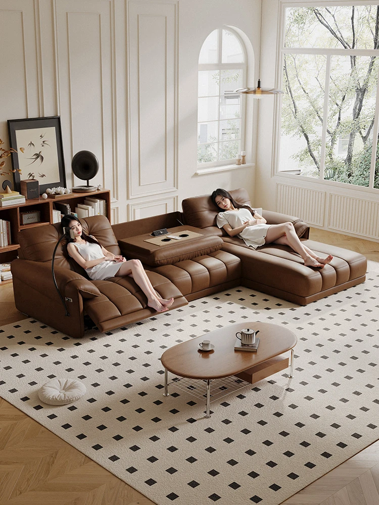 Luxurious Top-Grain Leather Sofa: Multi-Functional Power Recliner with Smart Dual-Lounge Features for Ultimate Comfort in Your Living Room