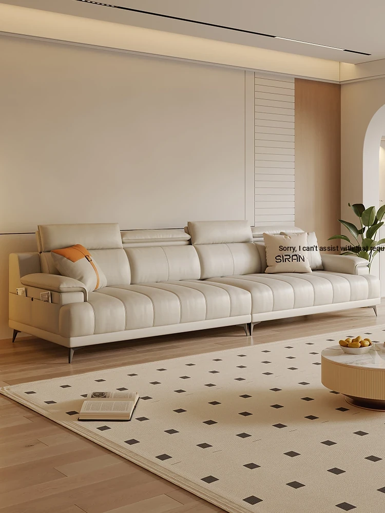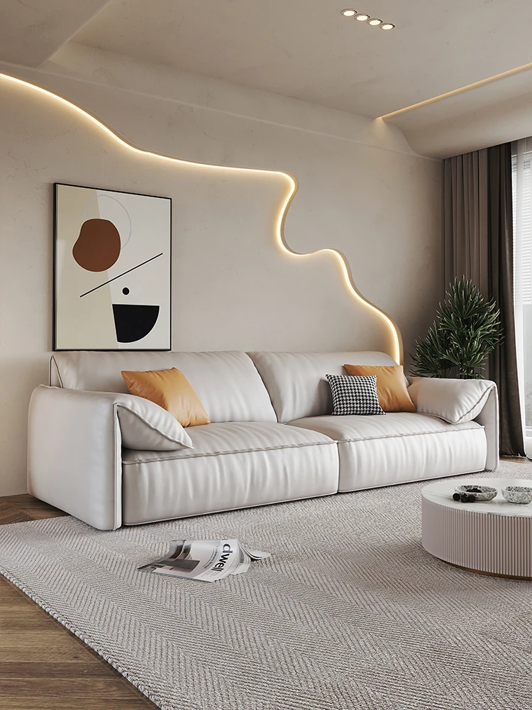 标题翻译与优化: "Elegant Italian Minimalist Genuine Leather Sofa - Modern Nordic Style Cream Sofa for Living Room, Versatile Design Adds Luxurious Comfort"
