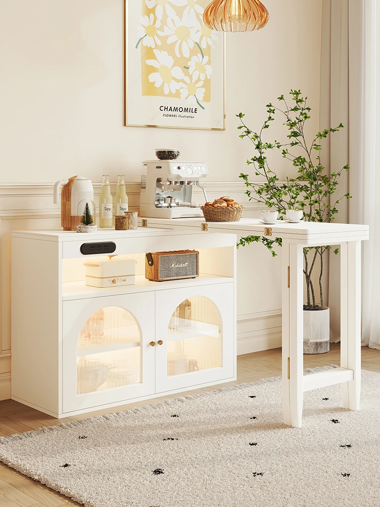 French Cream Style Sideboard Cabinet - Sleek and Modern Nordic Design for Living Room with Wall-leaning Storage and Stainless Steel Legs - Ideal for Entryway Organization
