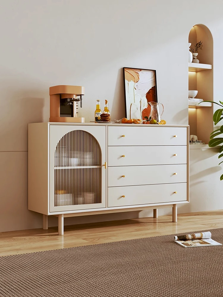 Nordic Solid Wood Wabi-Sabi Style Sideboard: Modern Minimalist Entryway Cabinet, French-Inspired Storage Chest, Versatile Tea and Studio Cabinet - Perfect for Chic and Stylish Interiors