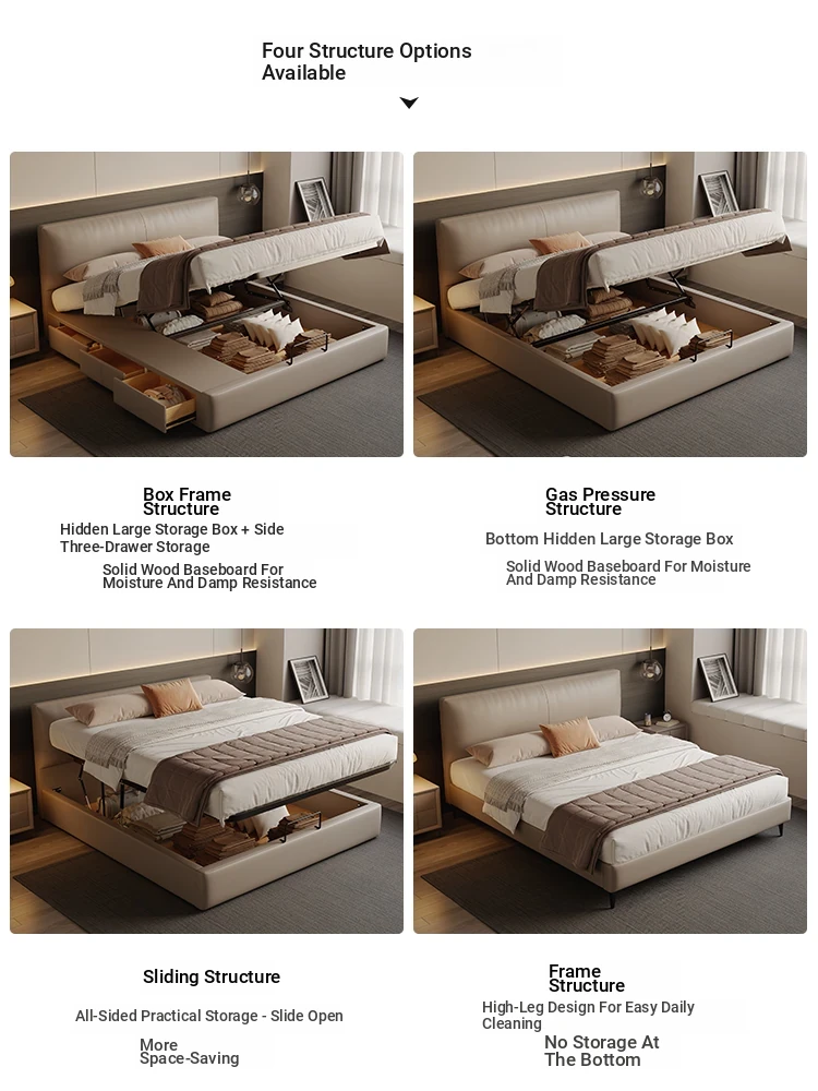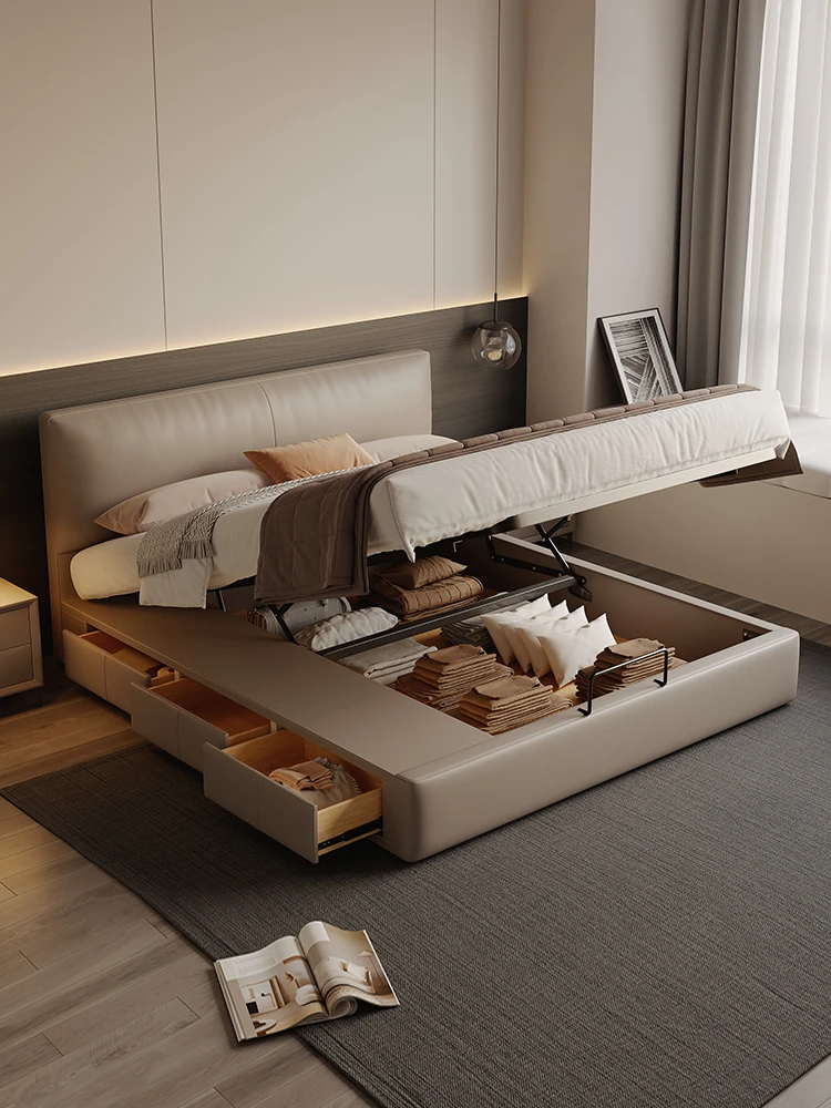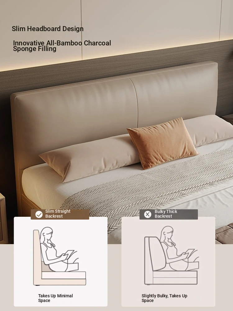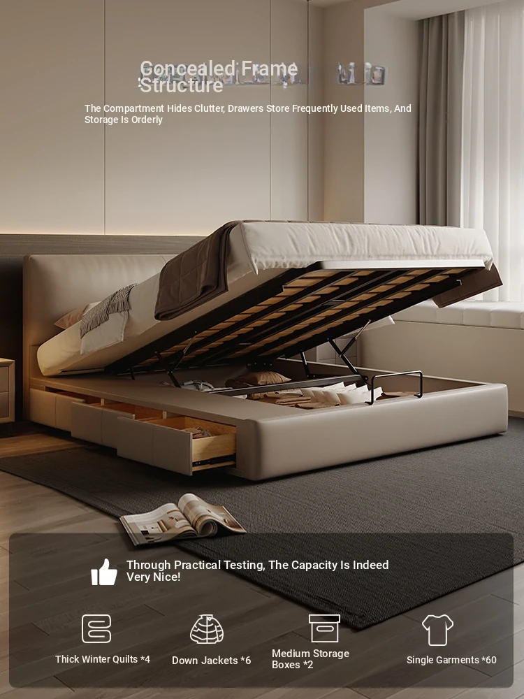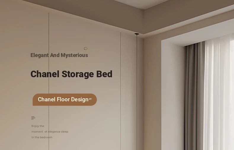 Chic Home Living: Luxurious Italian Minimalist Chanel Leather Bed - Modern Simplicity with Spacious Storage and Elegant Design for Your Master Bedroom