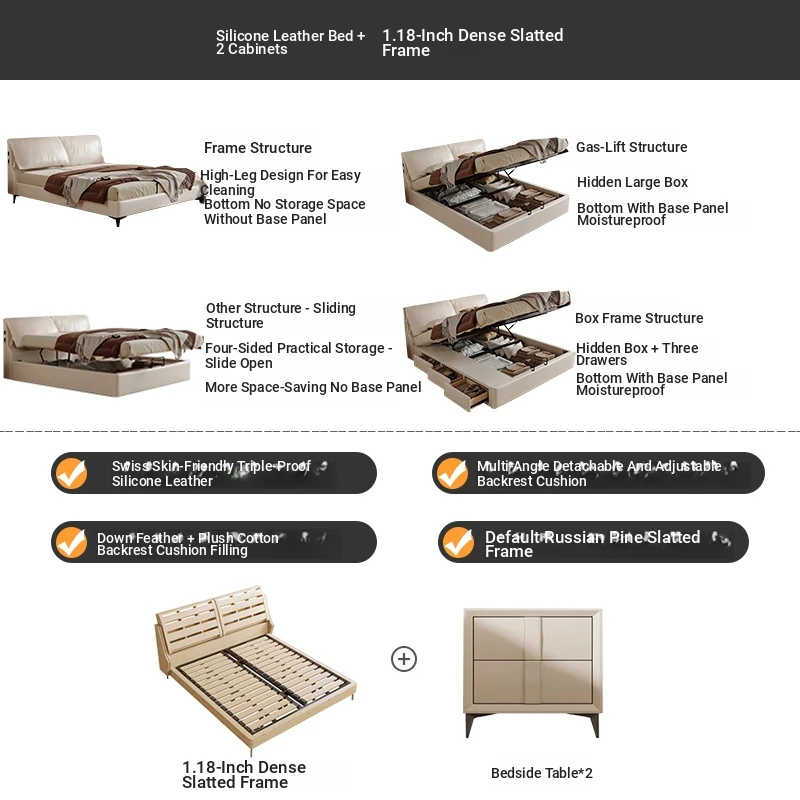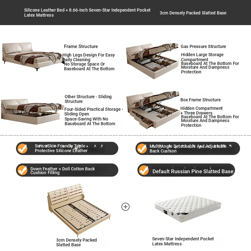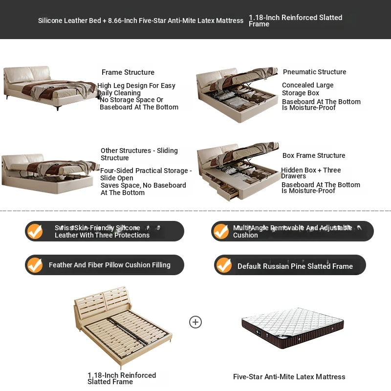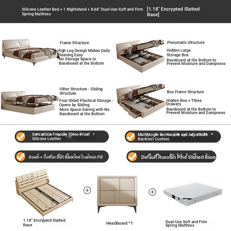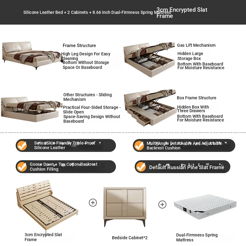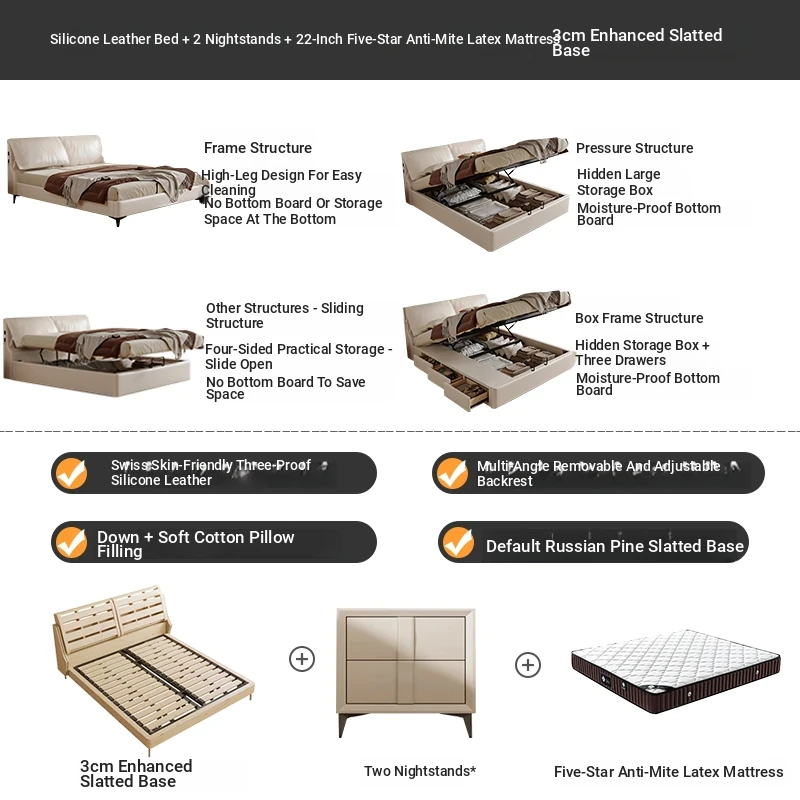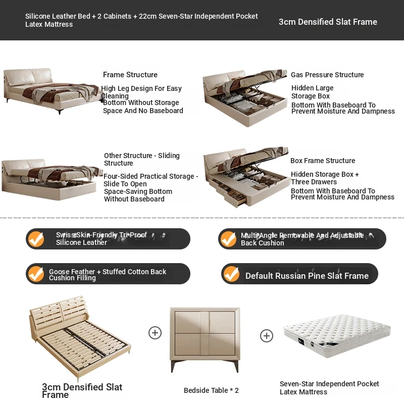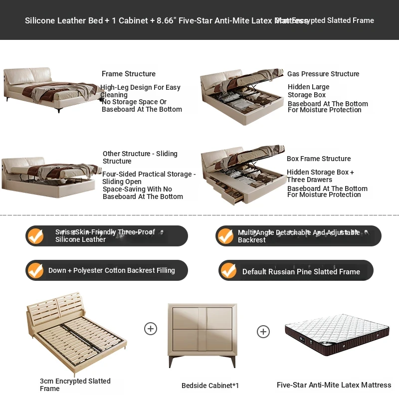 Silicone leather bed +2 cabinets +8.66in five-star mite removal Latex Mattress [1.18in encrypted row skeleton]]