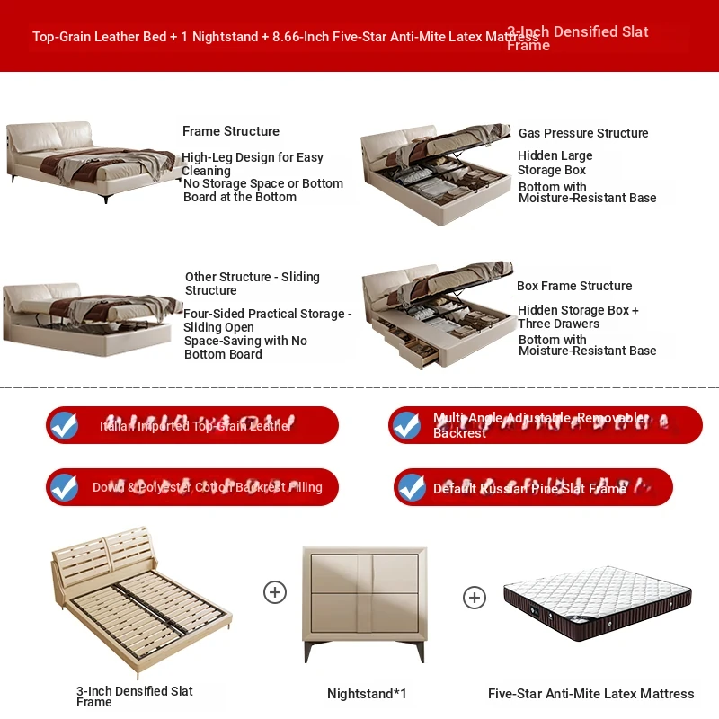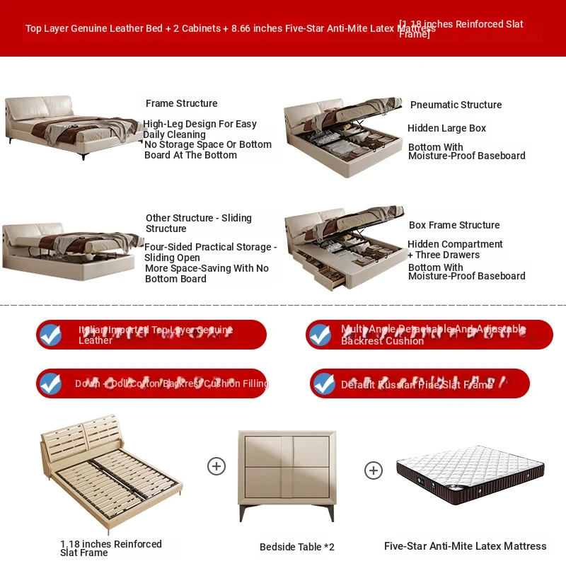Top layer cowhide bed +2 cabinets +8.66in five-star mite removal latex mattress