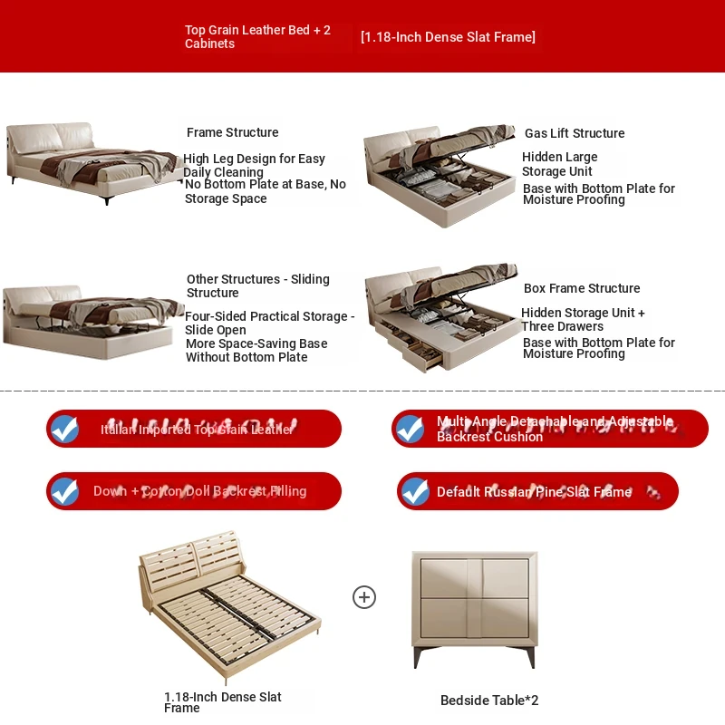 Head layer cowhide bed +2 cabinet [1.18in encrypted row skeleton]]