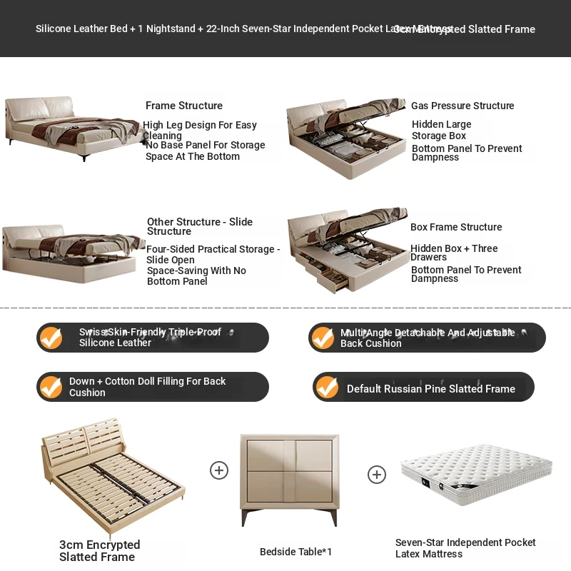 Silicone leather bed +1 cabinet +8.66in seven-star Independent bag Latex Mattress [1.18in encrypted row skeleton]]
