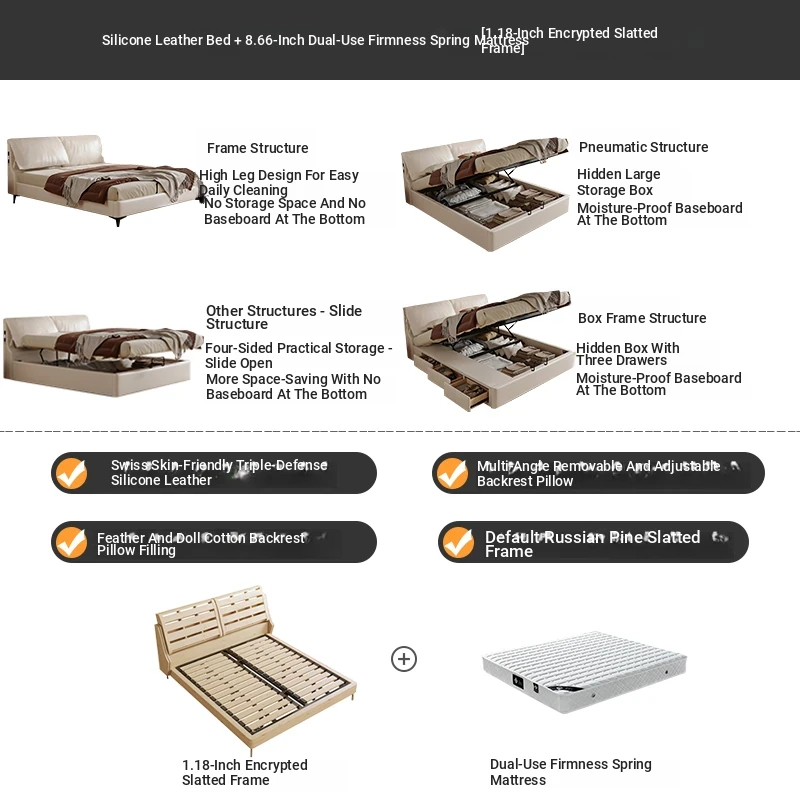 Silicone leather bed +8.66in soft and hard dual-purpose spring mattress [1.18in encrypted row skeleton]]