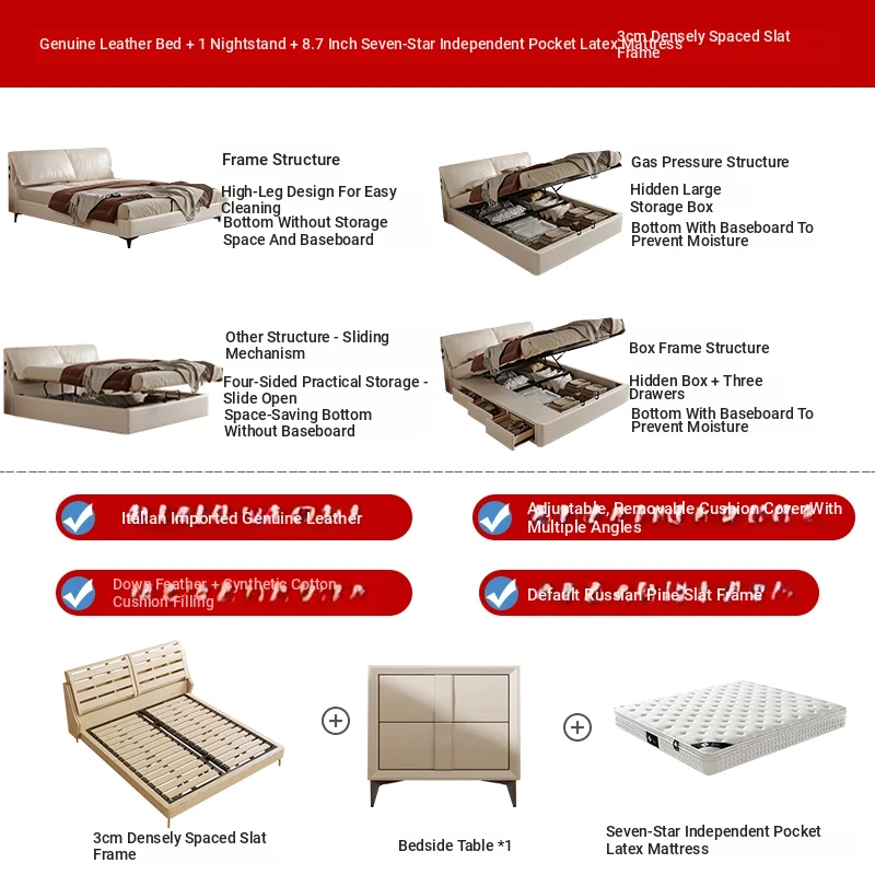 First layer cowhide bed +1 cabinet +8.66in seven-star Independent bag latex mattress