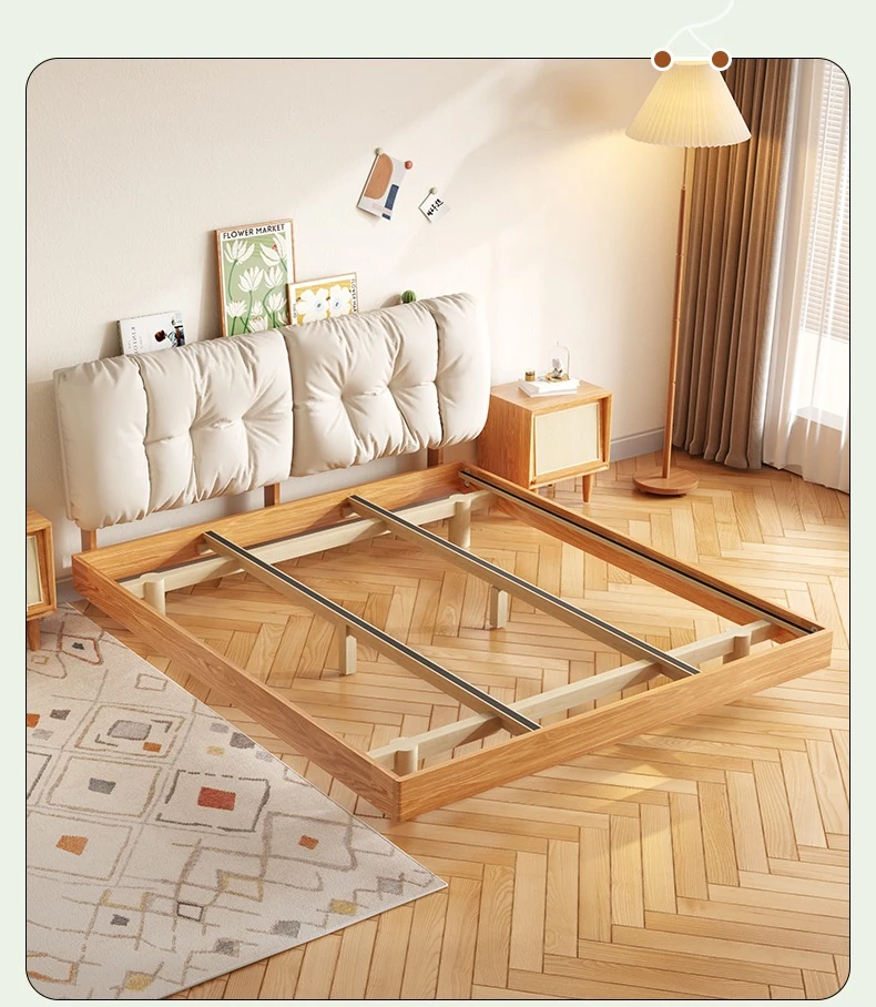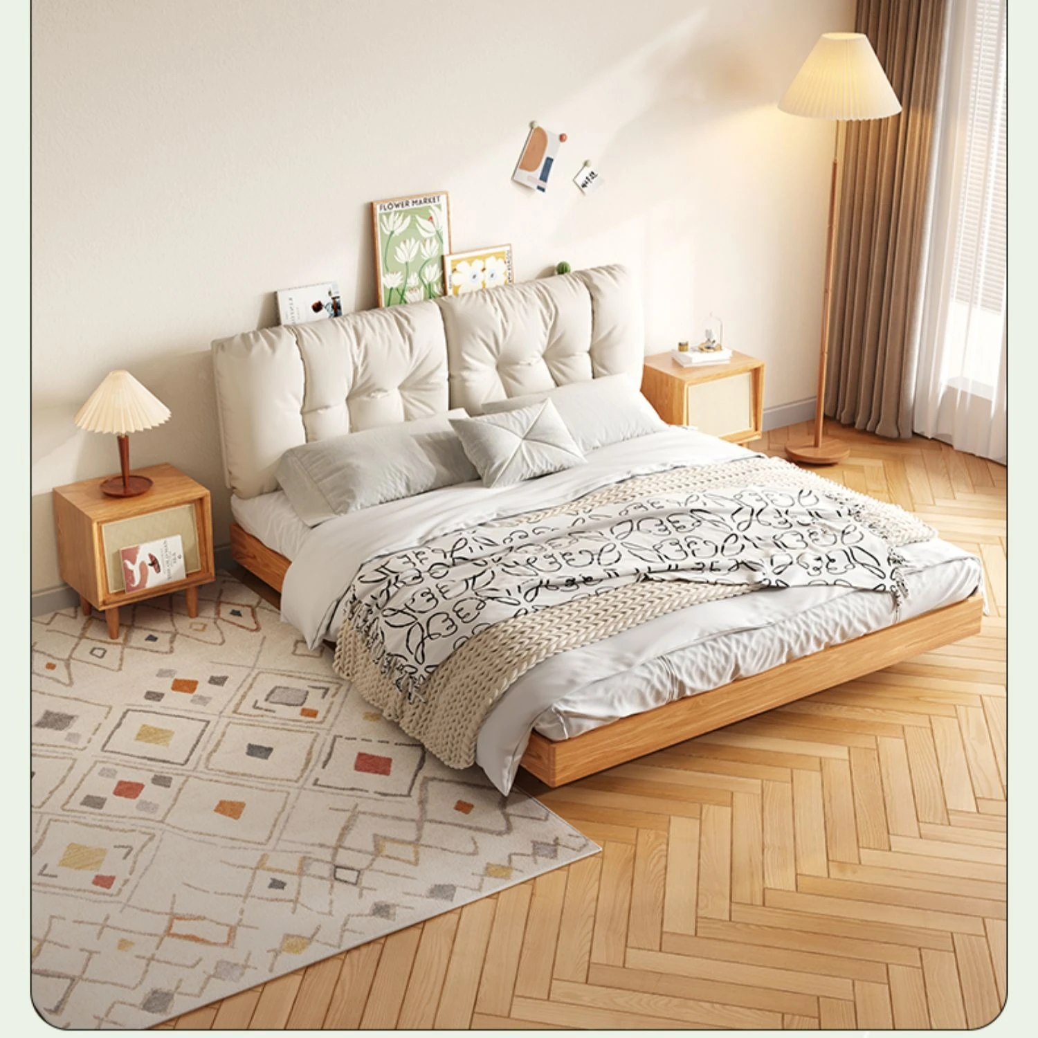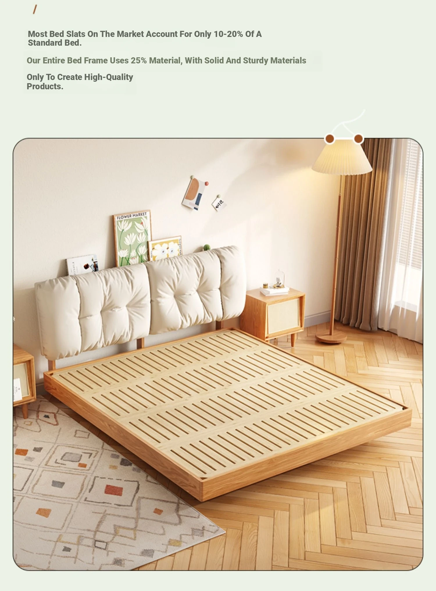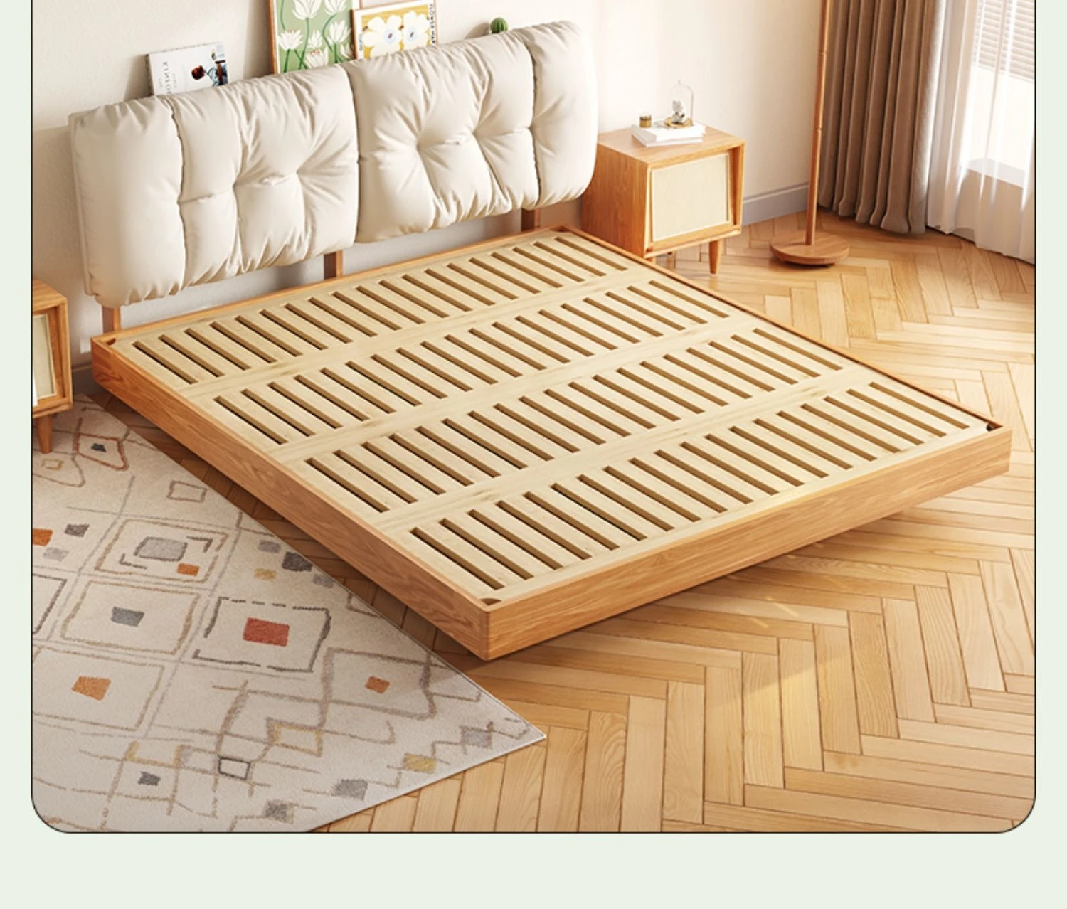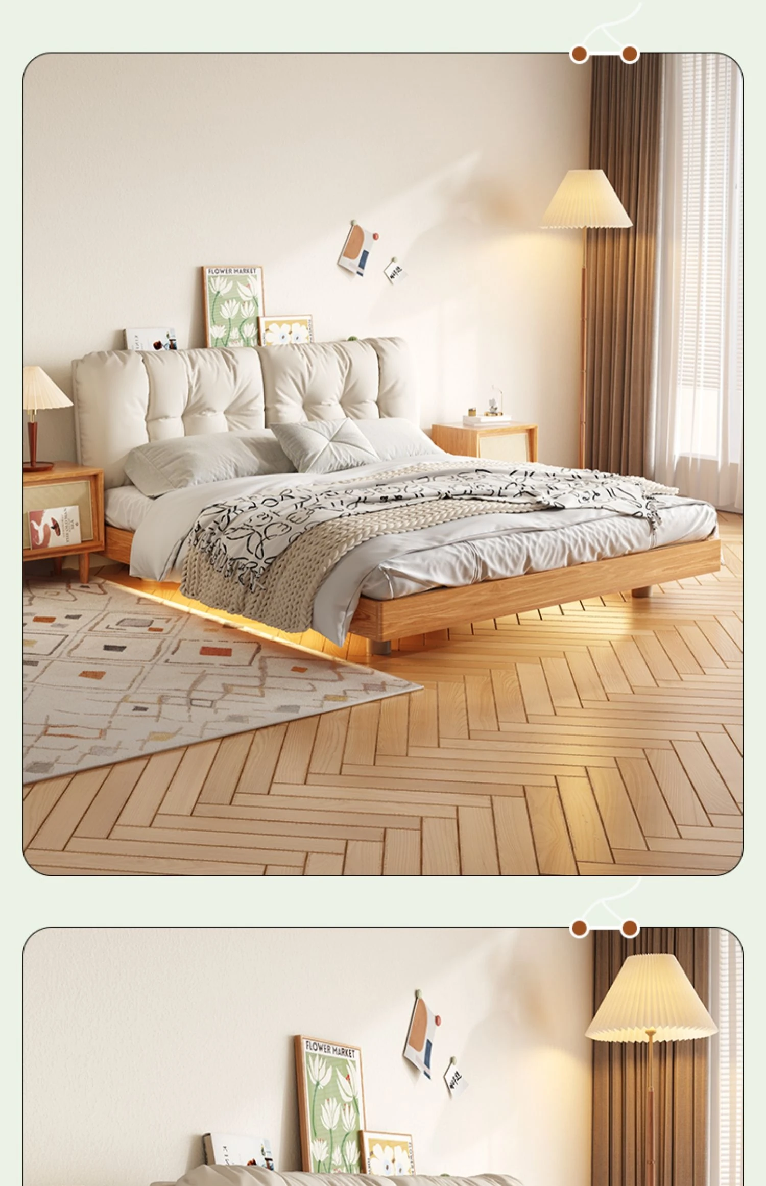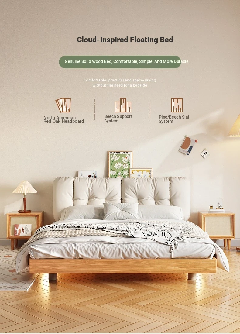 Title: Elegant 1.8m Cloud-Inspired Floating Bed - Solid Wood, Modern Nordic Style, Ideal for Compact Master Bedrooms
