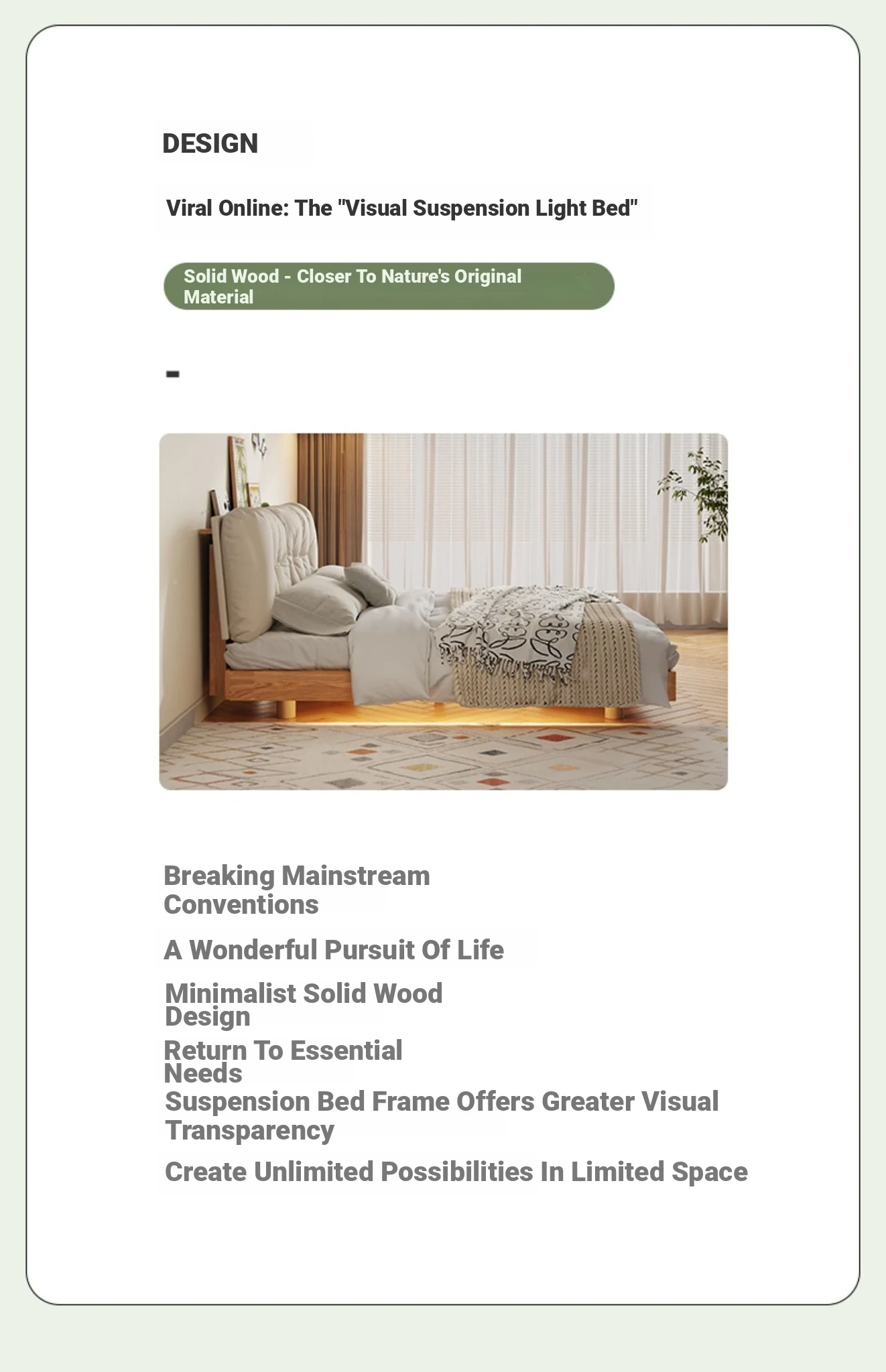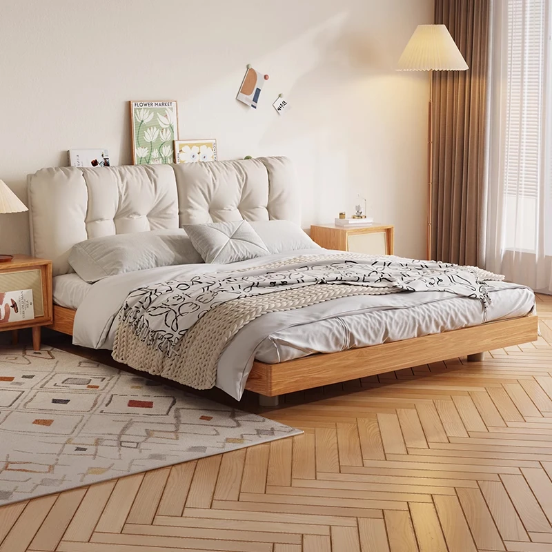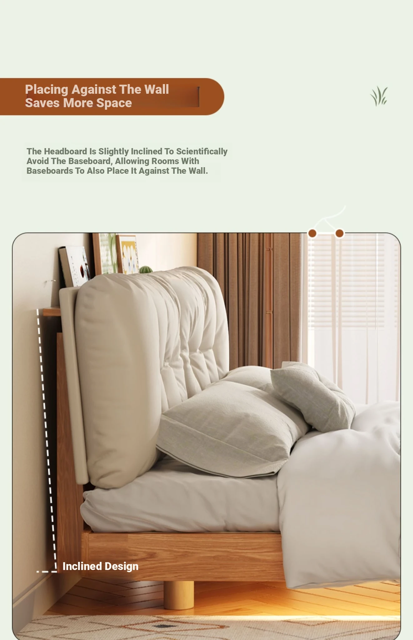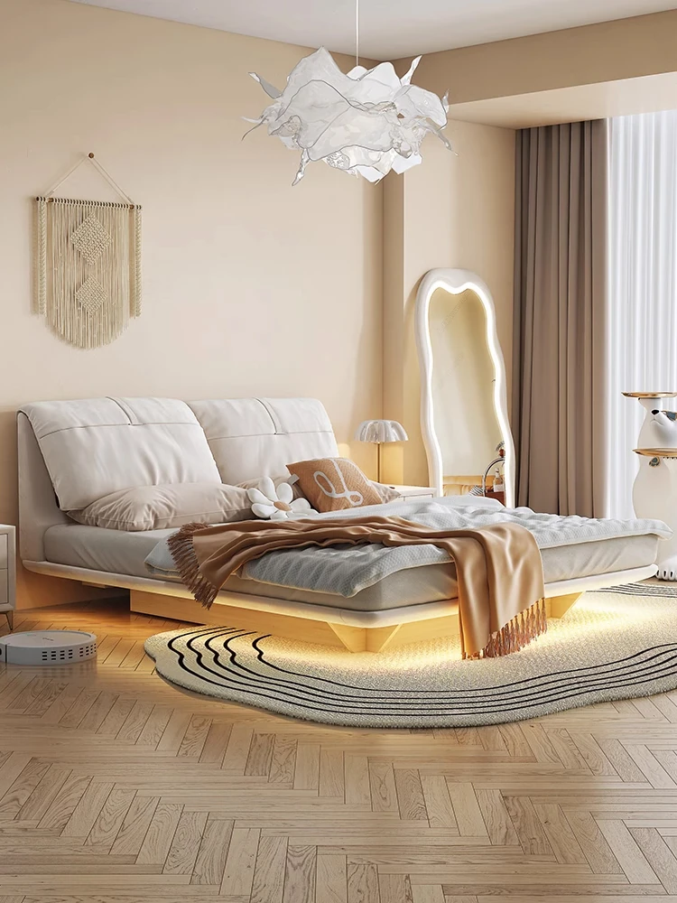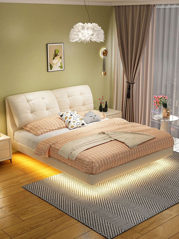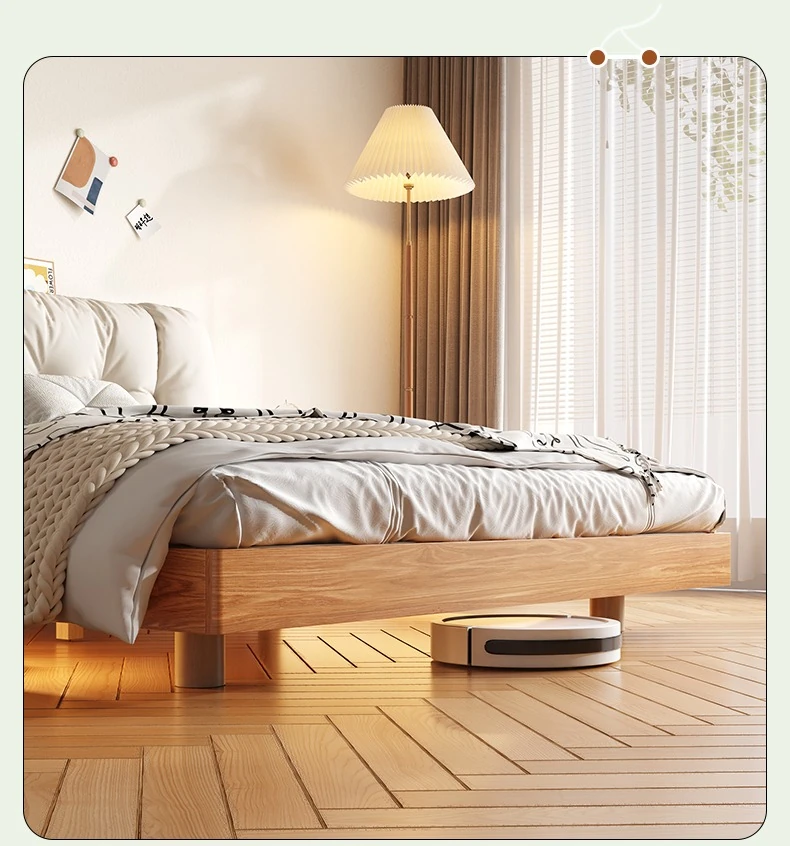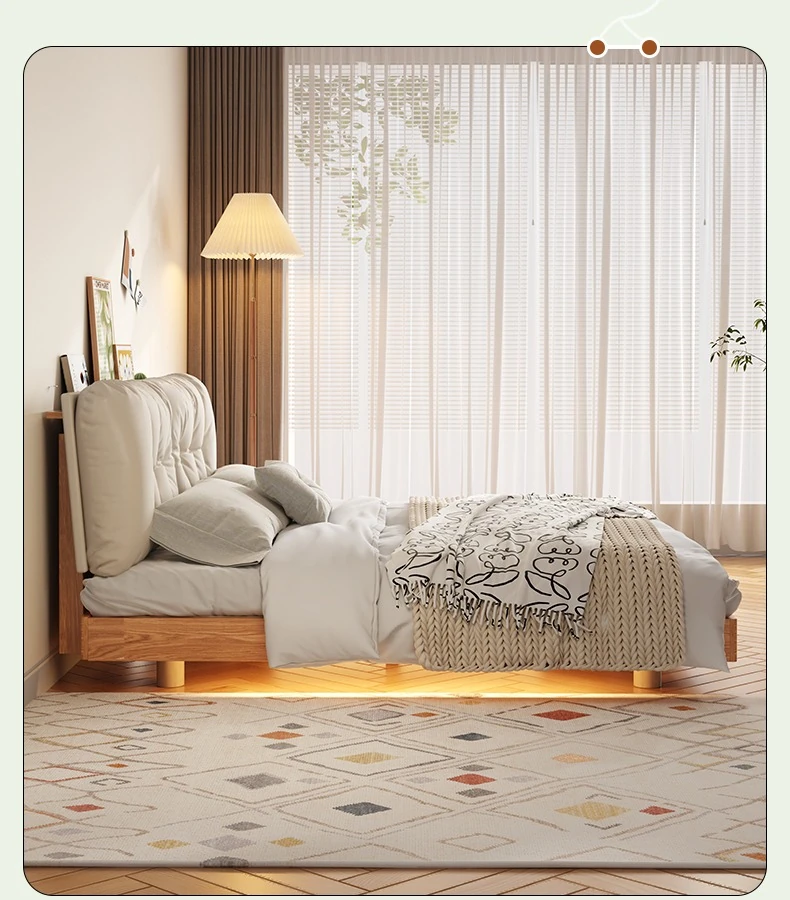 Title: Elegant 1.8m Cloud-Inspired Floating Bed - Solid Wood, Modern Nordic Style, Ideal for Compact Master Bedrooms
