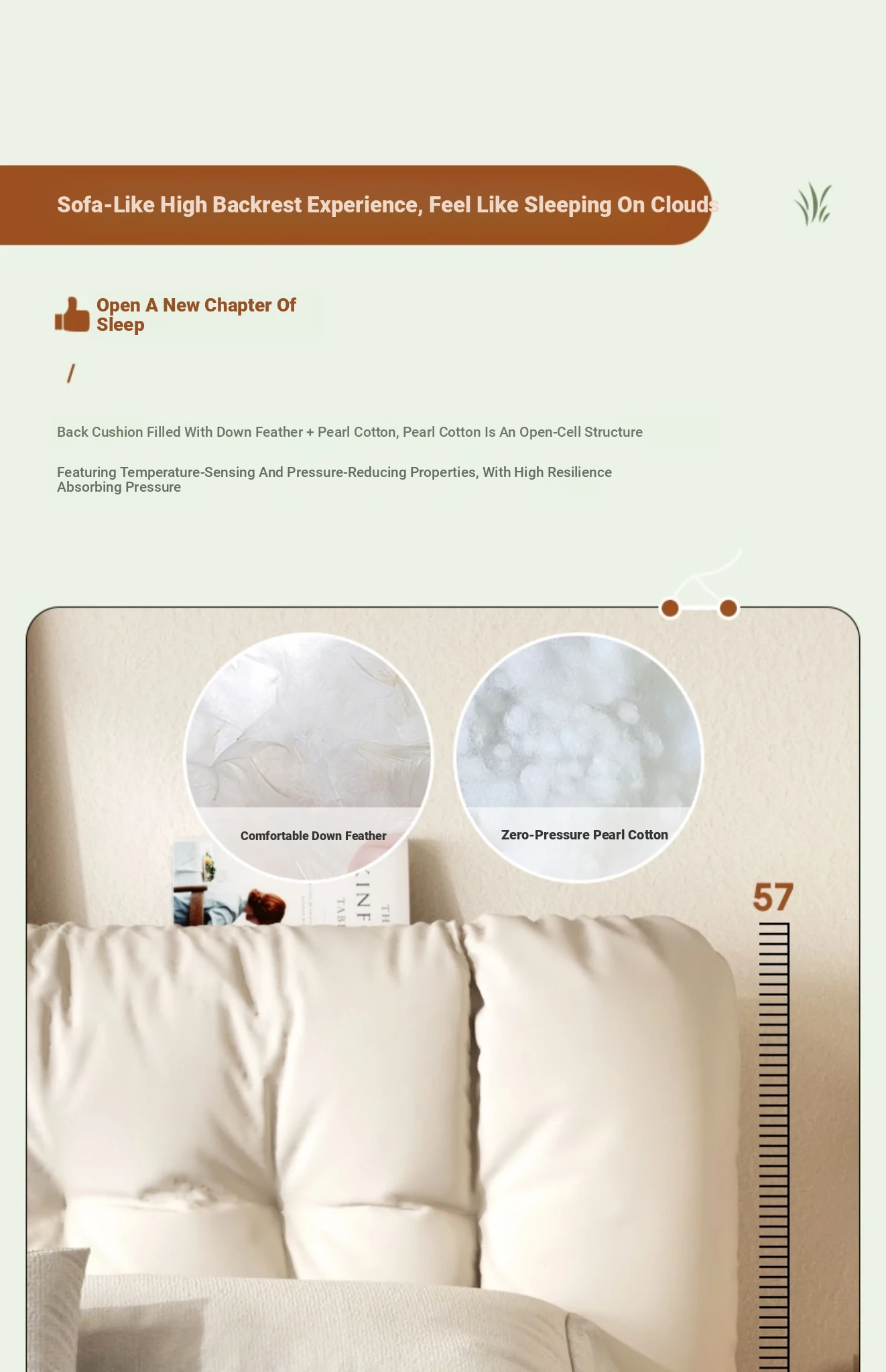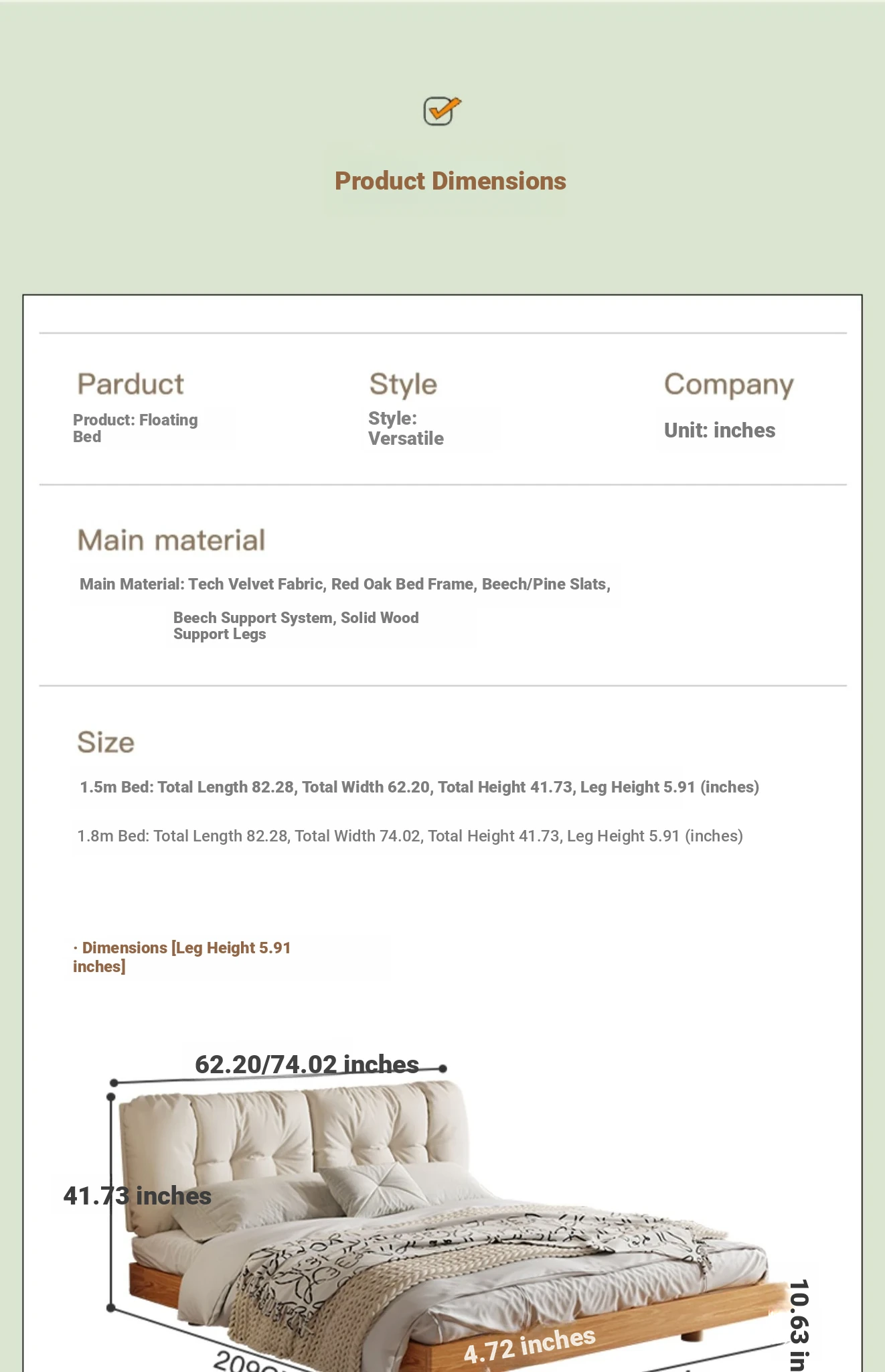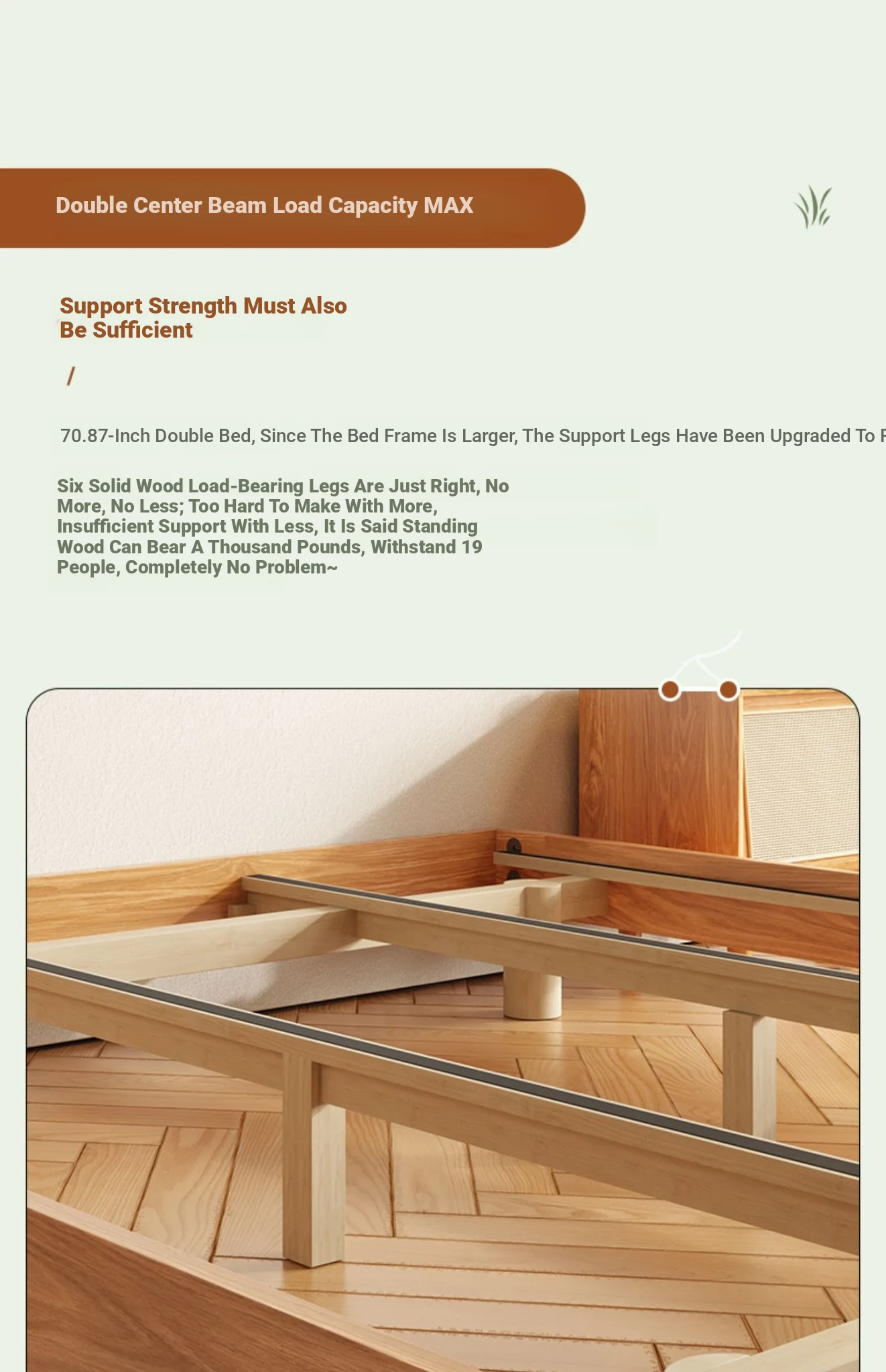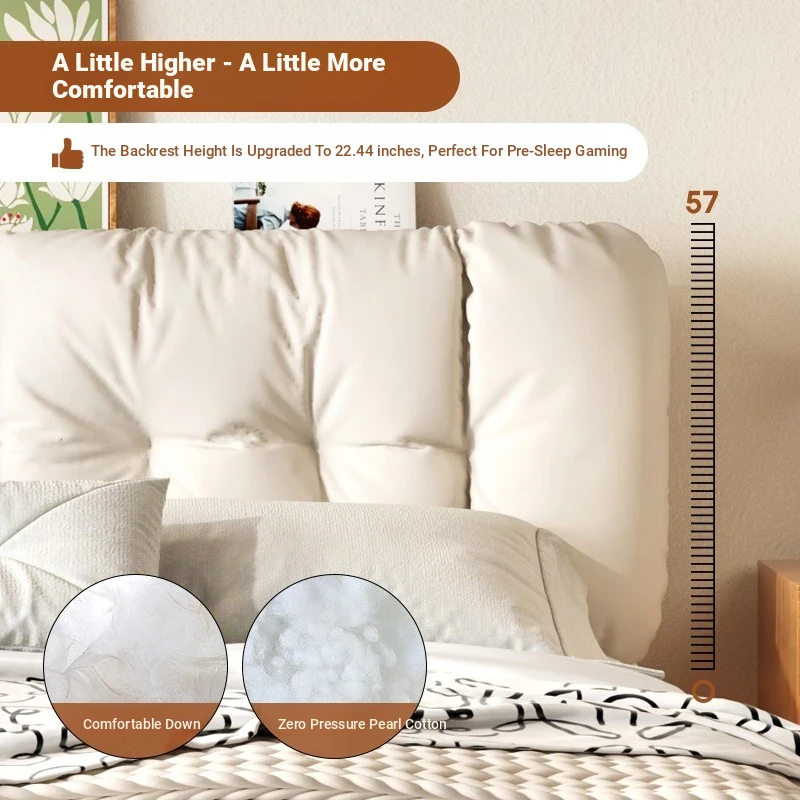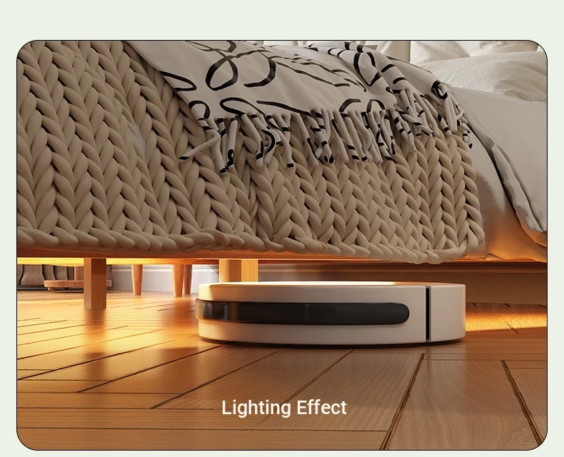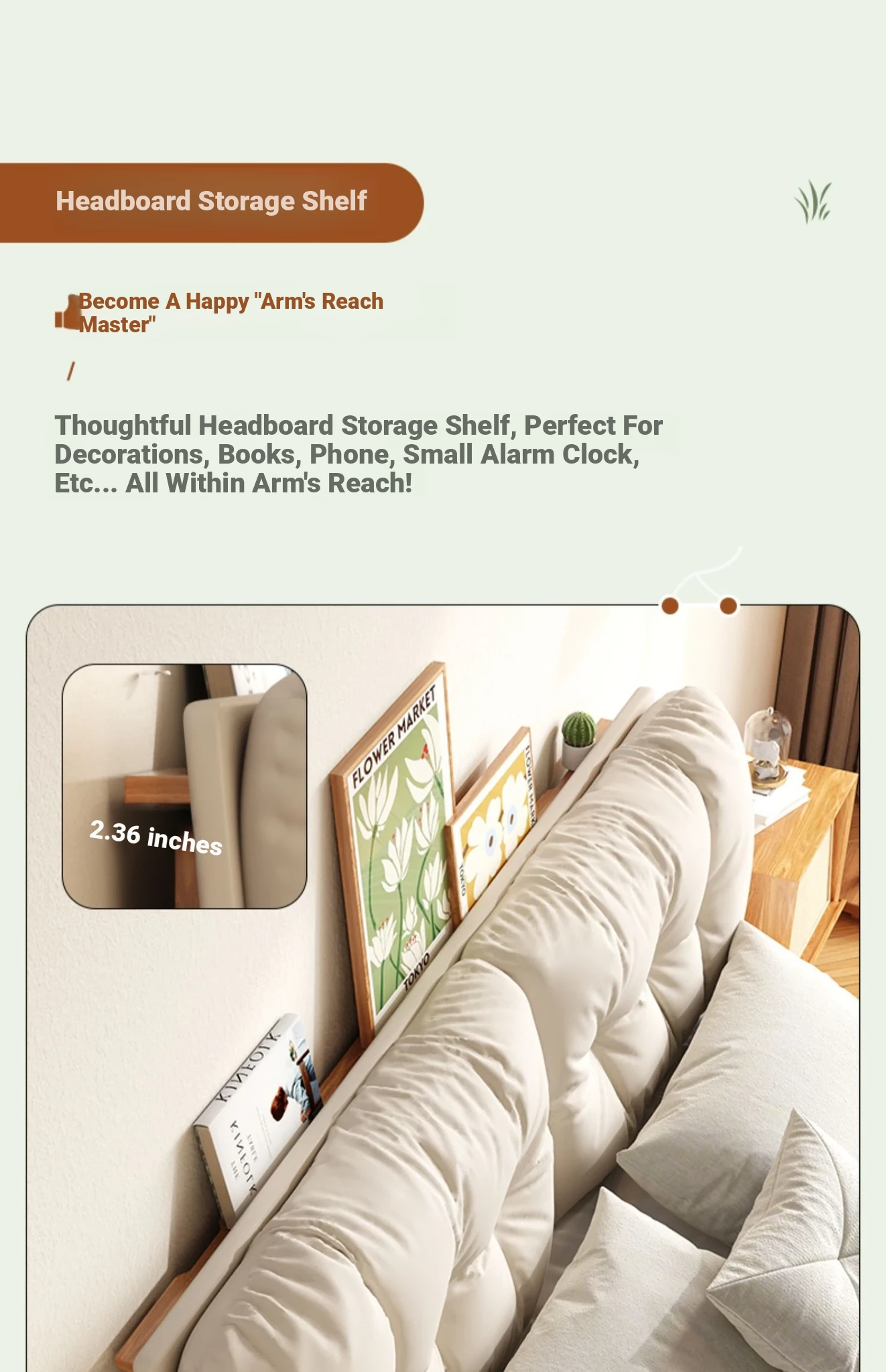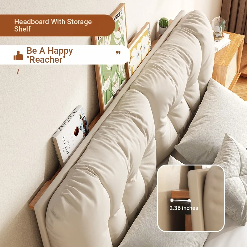 Title: Elegant 1.8m Cloud-Inspired Floating Bed - Solid Wood, Modern Nordic Style, Ideal for Compact Master Bedrooms