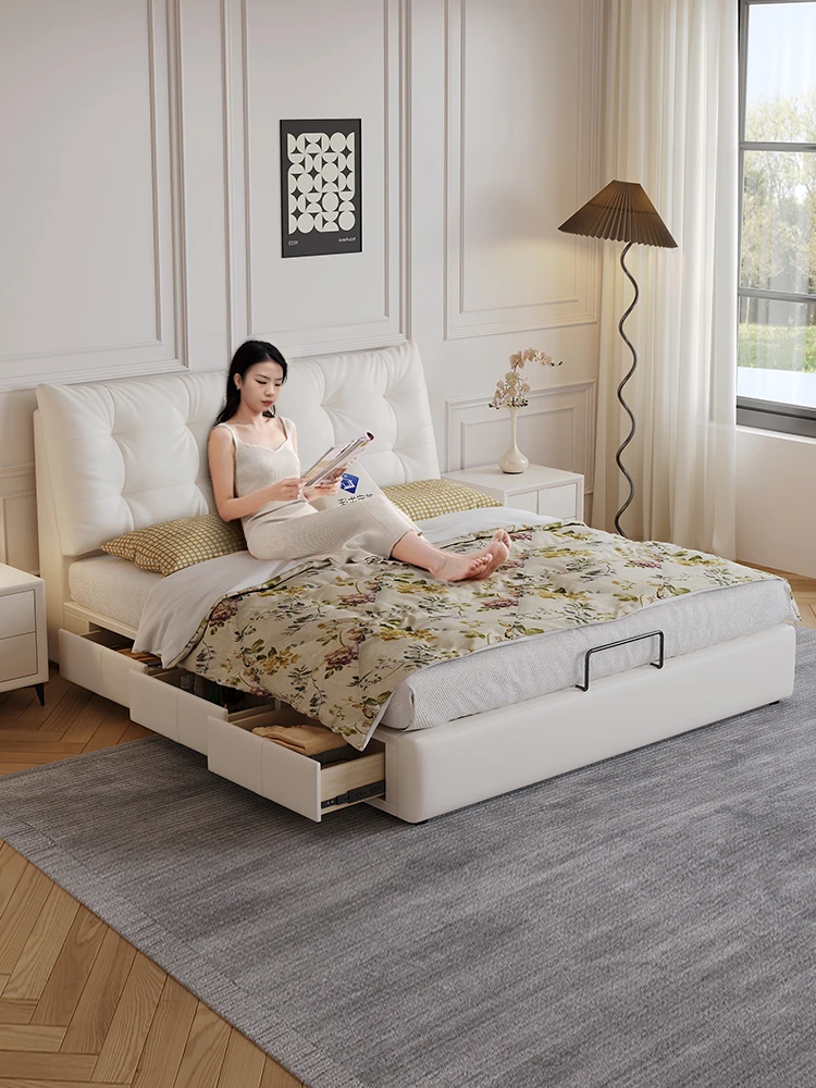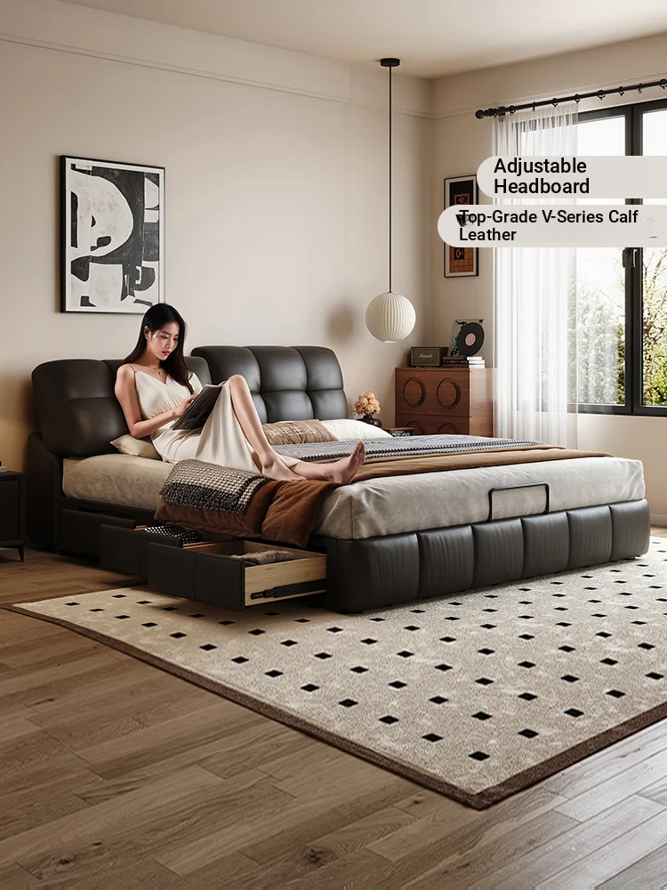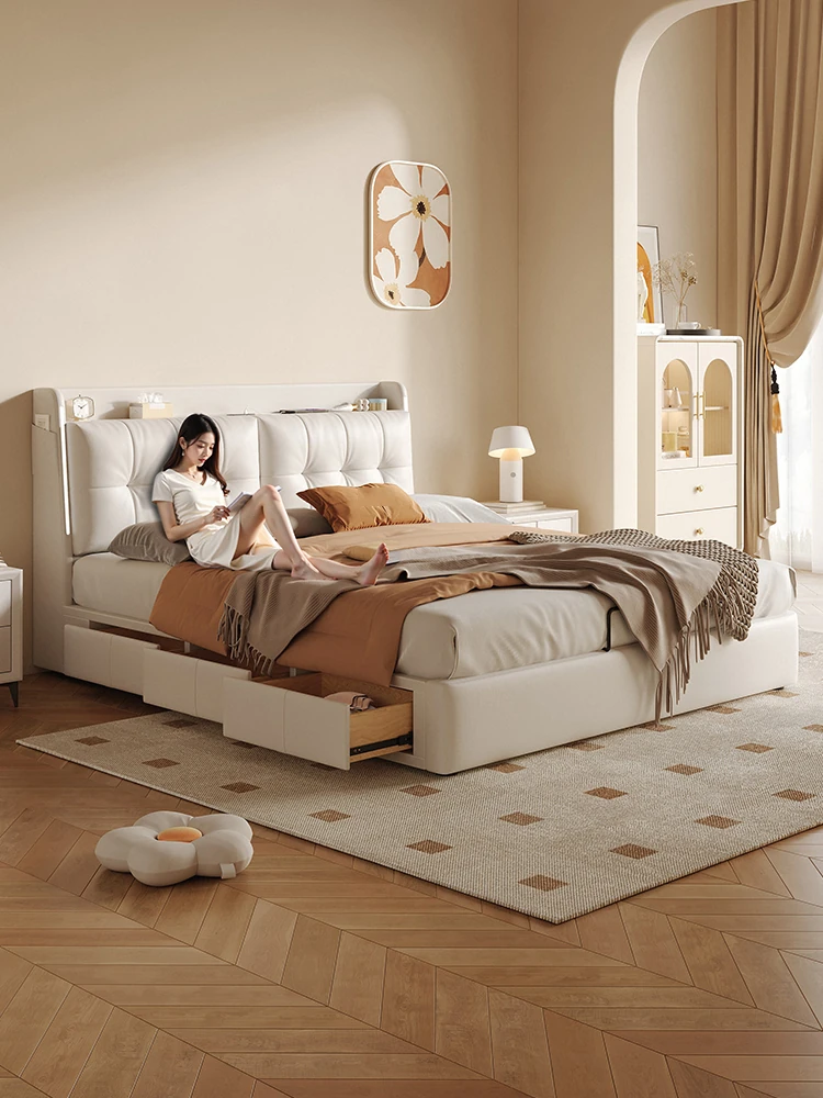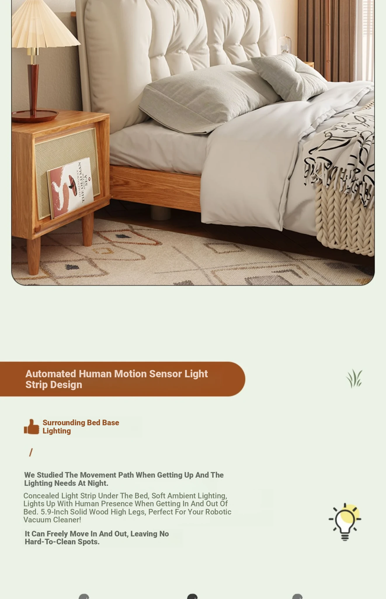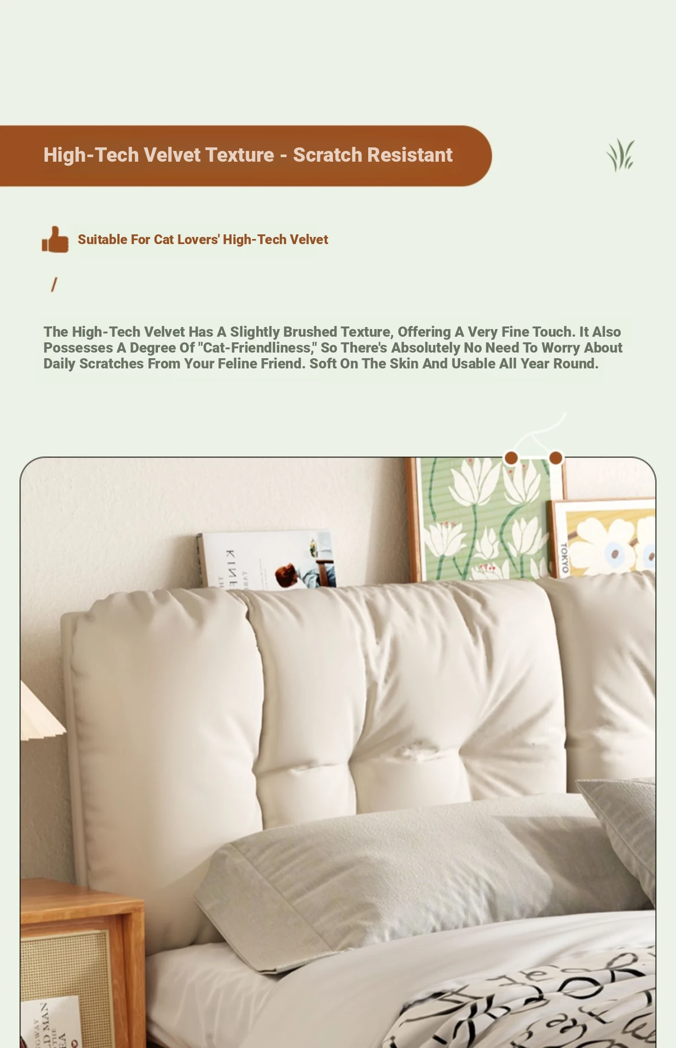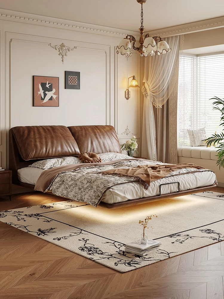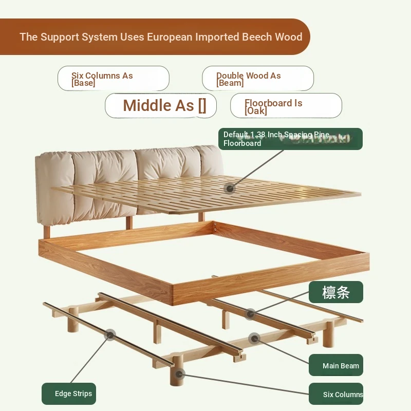 Title: Elegant 1.8m Cloud-Inspired Floating Bed - Solid Wood, Modern Nordic Style, Ideal for Compact Master Bedrooms