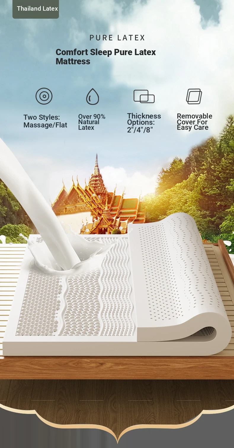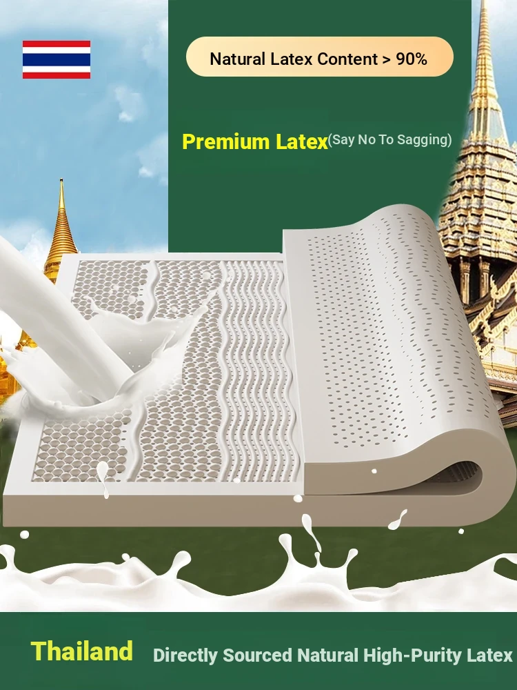 Thai Original Natural Latex Mattress - Imported Premium Soft Pad for Back Support, Available in 1.8m & 1.5m Sizes, Thickness Options: 5cm & 10cm. Perfect Comfort for a Restful Sleep!